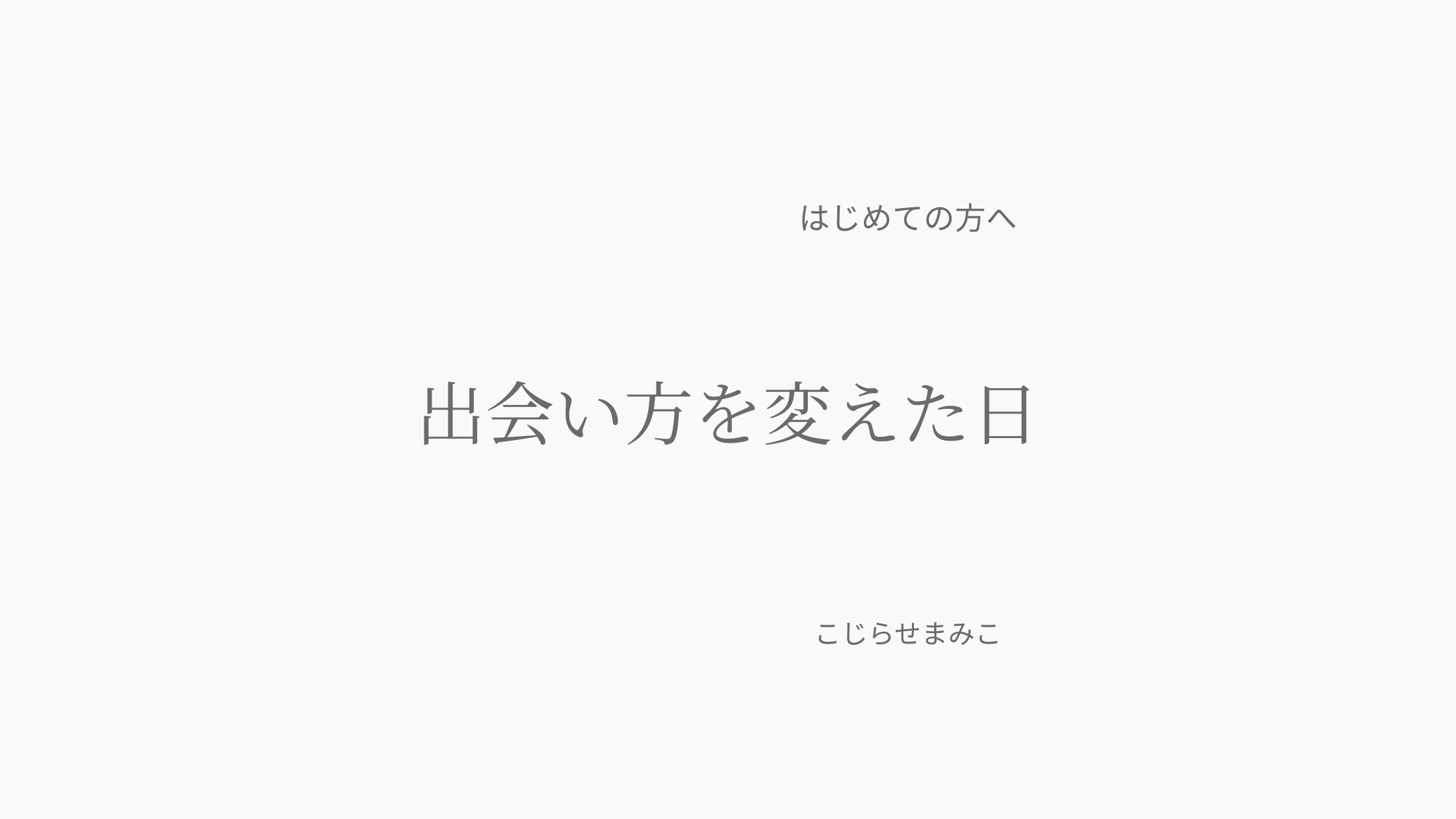 【はじめての方へ】私が出会い方を変えた話